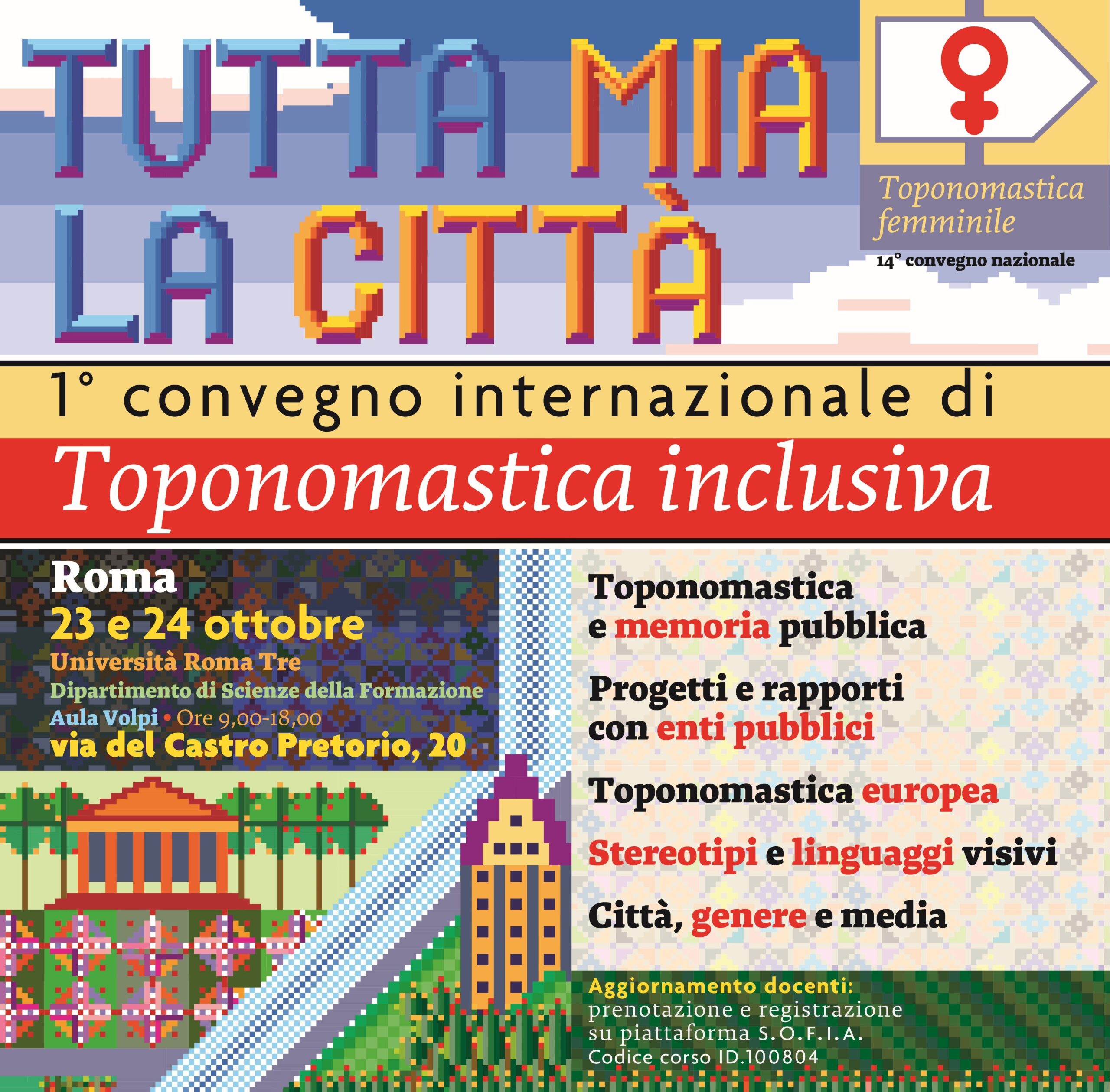 Dal 23 al 24 ottobre 2025 si svolgerà a Roma il I Convegno Internazionale di toponomastica inclusiva. L’evento dal titolo “Tutta mia la città” coglie l’occasione del XIV Convegno nazionale di Toponomastica femminile, associazione che promuove la conoscenza del contributo femminile alla storia, all’arte e alla società attraverso l’onomastica delle città.
